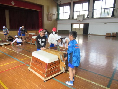 などと声をかけながら跳び箱の準備や片づけをしている姿がありました。