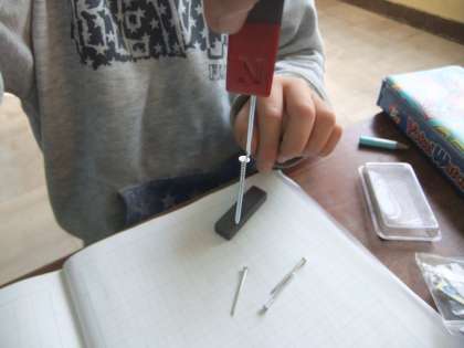 今日の「じしゃくのふしぎを調べよう」の学習では,鉄くぎを磁石にする実験を行いました。実験結果から,「磁石についた鉄は,磁石になる」ということが分かりました。