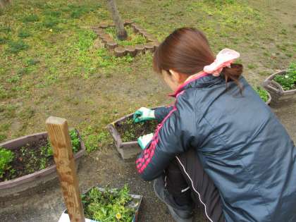 管理用務員の長谷川さんが,中庭でプランターの雑草抜きをしてくださいました。