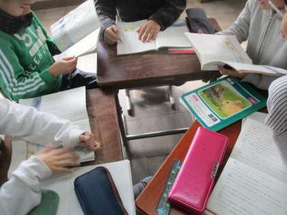 音読劇に向けて,準備を進めています。グループで相談したり,教科書に書き込んだり,読む人と聞く人に分かれて練習したりと,自分達で考えて取り組んでいました。