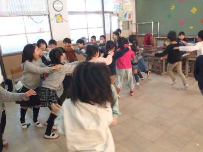 お楽しみ会の中で,かもつ列車をしました。みんなで仲良く楽しみました。いい思い出ができました。