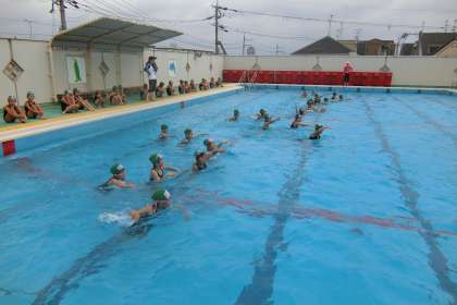 水泳学習。25メートルを泳げるように一所懸命練習をしました。