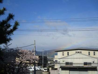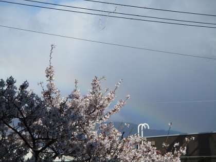 2年生がはじまって1週間。朝から子ども達がうれしそうに「にじがでてる!」と教えてくれました。学校の桜とにじがとてもきれいで,みんな幸せな気持ちになりました。