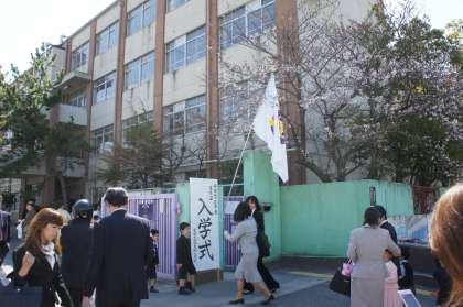 素晴らしい天気の中,おうちの方に手をひかれた1年生が,正門前で写真を撮る姿が見られました。