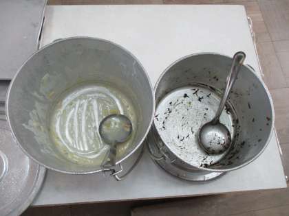 先週から給食がはじまりました。みんな残さずモリモリ食べています。今日も食缶がピカピカになりました。
