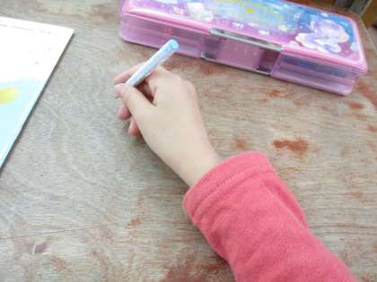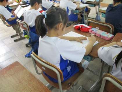正しい鉛筆のもち方を意識して丁寧にカタカナを書く練習をしました。背筋を伸ばして正しい姿勢で書くと,普段よりも更にきれいな字が書けました。