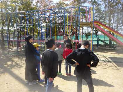 今日の運動タイムはみんなで総合遊具の使い方を勉強しました。「親指と他の4本指を使ってしっかり遊具を掴みましょう。」「総合遊具ではふざけたりせず,安全に気を付けて遊びましょう。」などのきまりを確認した後,みんなで総合遊具を使って遊びました。