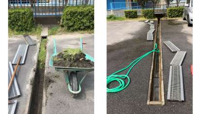 4月20日(土)に池の周辺の草刈りや,溝にたまっていた泥上げを羽束師ジュニアサッカーの方々にしていただきました。
