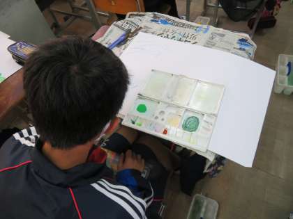 チューリップやパンジー,桜などをスケッチし,着色し始めました。