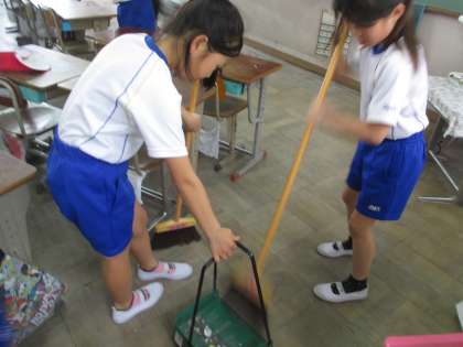 掃除時間の様子です。子どもたちは,言葉は発さず,静かに掃除をしています。いつも一生懸命で丁寧です。掃除をしながら心の整頓もしているのです。掃除後の子どもたちはいつもすっきりした様子です。
