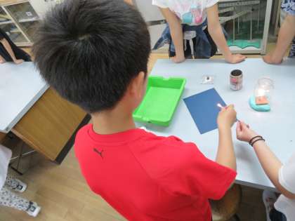 今日は,空気の流れを線香のけむりを使って観察しました。