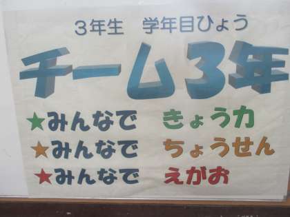 三年生がスタートして1か月が過ぎました。新しい教室,クラス,先生になって新たな気持ちでみんながんばっています。GWゆっくり過ごして,パワーをためてGW明けもやる気いっぱいこのままがんばっていきましょう。