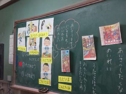 道徳科の学習で「あいさつ」について学びました。教材文を読んで,登場人物の気持ちを考えます。「どうしてかな。」「なぜだろう。」など,一生懸命考える子どもたちの姿が印象的でした。学習の最後に「これで道徳の授業を終わります。」「ありがとうございました!」と大きな声であいさつする児童の姿を見て,「あいさつ」についてしっかり考えることができたと感じました。