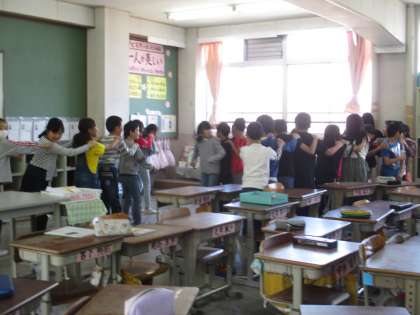 「10連休長かったなあ」「あっという間だったなあ」子どもたちからこんな声がかえってきました。みんなに会うのはとても久しぶりで,表情を見ると心が少しほぐれていないのでは…と感じました。そこで,音楽の時間の最初の5分間に「リズム遊び」をして楽しく交流していきました。曇っていた子どもたちの顔が晴れやかになりました。子どもたちの温かい笑顔の花が教室中にたくさん広がりました。