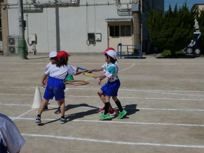 リレーに挑戦しました。先週は,順番がごちゃごちゃになり,