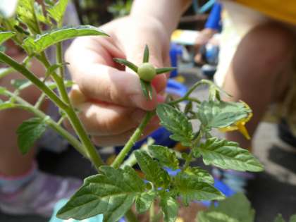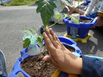 など,昨日植えたミニトマトを観察しました。