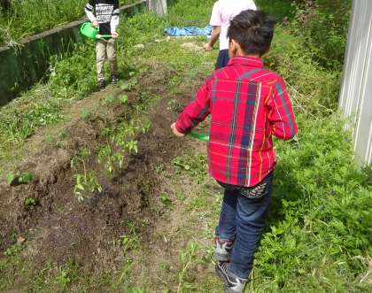 総合的な学習の時間で畑に野菜を植えました。それ以来,ひまわり学級の朝は畑の水やりから始まります。「大きく育ちますように。」「たくさん水をあげよう。」など,一生懸命水やりをする児童の姿が毎朝見られます。