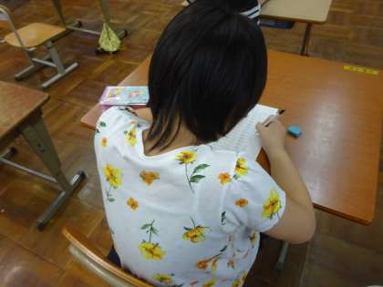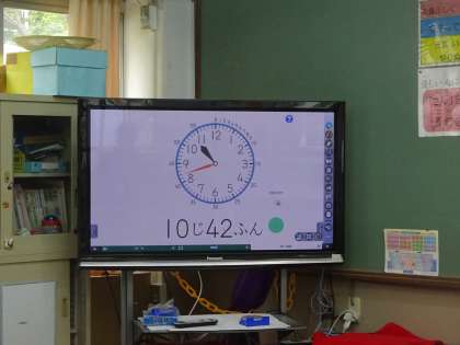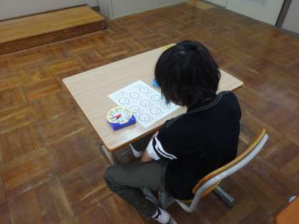 ひまわり1組の教室では,3・4・5年生児童がそれぞれの課題に個別に取り組んでいます。時計の学習に取り組む児童は,これまで「7時・・7時30分・・・」と30分単位で読んでいた時計の目盛を,「7時1分・・7時2分・・・」と読む学習に取り掛かりました。計算の学習に取り組んでいる児童は,いつもよりも問題数を増やし,これまでの学びを定着させるために反復練習をしました。いつも楽しそうな笑い声が聞こえる教室ですが,課題に取り組んでいる最中はシーンと静まり返ります。集中している証拠です。