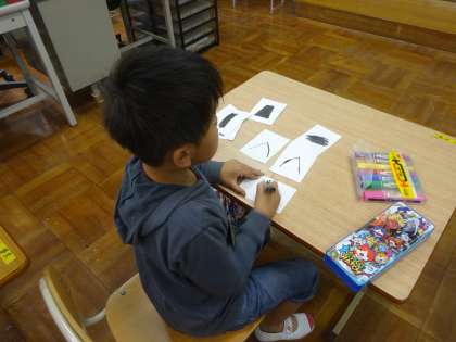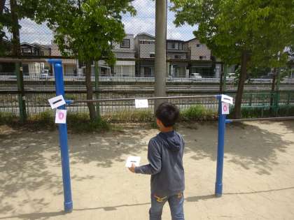 「校内のいつもの場所の姿を自分たちの手で変えてみよう」というめあてをもって学習に取り組みました。「目と口をくっつけると生き物になるよ。」という児童のアイデアをもとに,校内のいつもの場所を生き物に変えていきました。「かわいくなったよ。」「本当に生きているみたいだね。」「もっとやってみたいな。」など,楽しみながら活動する児童の姿がありました。