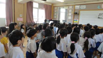 一年生を迎える会へ向け,学年で台詞や歌の練習をしました。