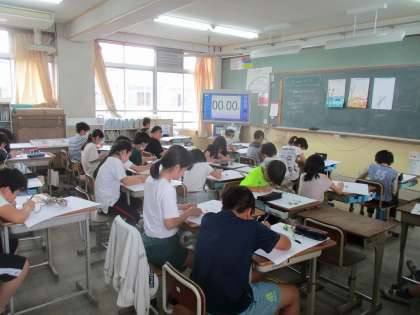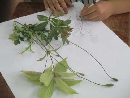 中庭やグラウンドに生えている植物を採集してきて,じっくり観察しながらスケッチしました。よくよく見ながら,懸命に描いていると,教室は水を打ったように静かでした。集中する姿,素晴らしいです。