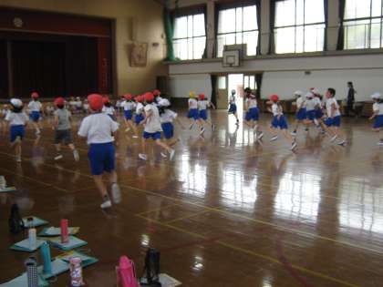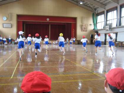 昨日,体力テストで「シャトルラン」を行いました。音楽の合図に合わせて一定の距離を走りきります。真っ赤な顔をしながら頑張って走る姿とそれを見て「がんばれ〜!」「まだいける〜!」と応援している姿がほほえましかったです。