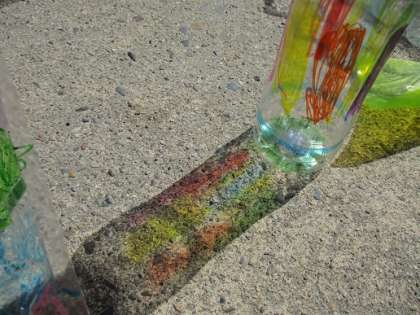 図画工作で「光のプレゼント」という学習をしました。持ってきた材料に,ペンで色を塗って,光に透かせてみました。色々な光の色があらわれて「きれい!」という声がたくさん聞こえてきました。みんなで光の色を感じました。