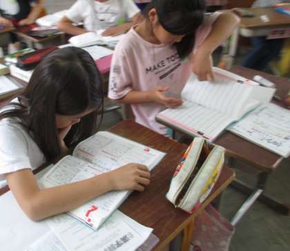 4年生では漢字辞典の使い方を学習しました。今では,隙間の時間に漢字辞典を読んでいる子もいます。