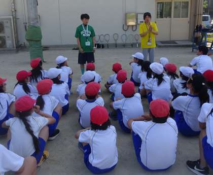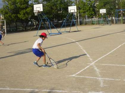 ひまわり学級の5年生児童は,今年度からソフトテニス部に所属します。今日は最初の活動日でした。準備の仕方や,練習の仕方などの説明を受け,実際にラケットでボールを打ってみました。「難しいなあ。」「でも楽しい。」「がんばるぞ。」など,一生懸命ボールを追いかける児童の姿が印象的でした。