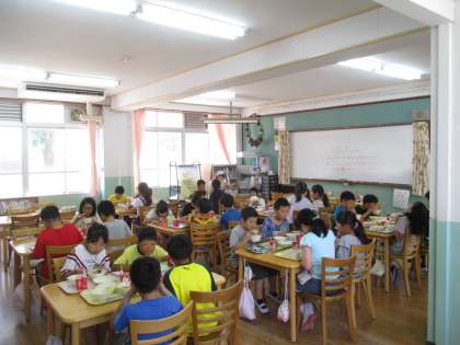 栄養教諭の先生に,食の指導をしていただきました。「元気な体をつくるためにどのような食事が大切なのか」を教えていただきました。昼食はランチルームで食事バランスを意識しながら食べていました。