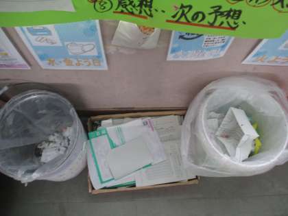 くらしとごみの学習です。ごみは毎日たくさんでています。ごみには種類もあります。教室のごみはいったいどこで処理されているのかを確かめました。子どもたちは,