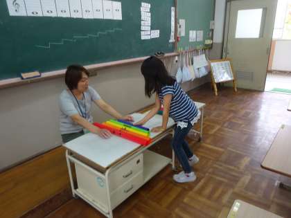 叩くとドレミの音が鳴るパイプを使って,「ドレミファソラシド」について考えました。パイプを手に取り,叩いて音を確かめます。「これはドの音かな。」「これはミの音だと思うよ。」「パイプが長いと音が低くなるのかな。」「パイプが短いと音が高くなるよ。」など,自分たちの言葉でドレミの音を学習していく姿が印象的でした。
