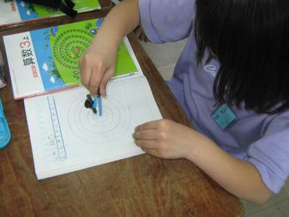 円をきれいにかく道具として,初めての「コンパス」に挑戦中です。