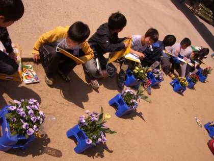 毎朝、水やりをがんばって、もっともっとたくさんお花がさいたらいいですね。