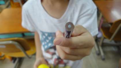 教室にある形にはどんなものがあるのか教室を歩いて探していました。