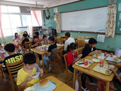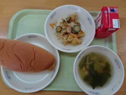 今日の献立は,黒糖コッペパン・牛乳・ソーセージと野菜のいためナムル・とうふと青菜のスープでした。
