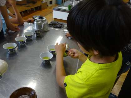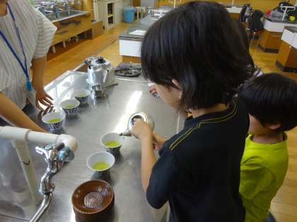 ひまわり学級の高学年児童を中心に,家庭科の学習をしました。「おいしいお茶をいれよう」というめあてをもって,家庭科室で活動しました。お茶のいれ方をみんなで確認して,自分でいれたお茶を最後は飲みました。「お茶を飲むとほっとするね。」「家でもお茶をいれてみようかな。」など,初めていれるお茶についてたくさんの感想を児童から聞くことができました。