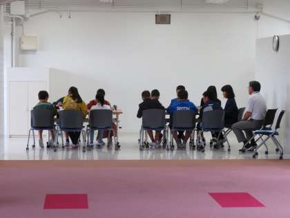 その後,課題をどのように解決していくのか,意見を出し合い,ブースの社員に伝達して