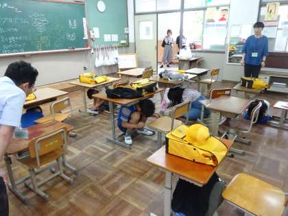 休日参観の後に,引き渡し訓練を行いました。大きな地震が起こったことを想定して行われました。事前に地震が起こった際の注意事項や,避難する際の「おはしもて」のきまりを確認しました。実際の訓練では,事前学習で学習した通り,きまりを守って避難することができました。その後,迎えに来てくださった保護者の方々と一緒に下校しました。「きまりを守って避難できたよ。」「もしものときのためにしっかり訓練しないといけないな。」など,有事の際に備える心を養うことができました。お忙しいにもかかわらず,引き渡し訓練にご協力くださった保護者の皆様,ありがとうございました。