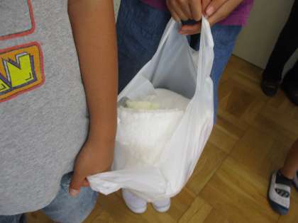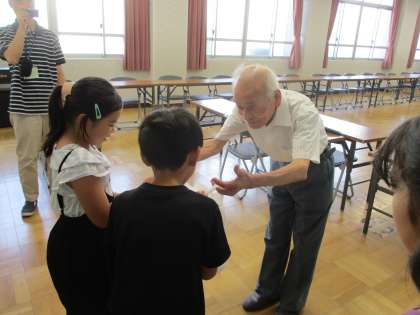 代表の児童が,しっかりお礼を言ってから受け取りました。