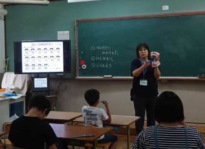 歯の正しい磨き方を知り,自分たちの健康を大切にする思いを育むことをめあてに学習を行いました。実際に歯ブラシを持って自分の歯を磨きながら,きちんと歯が磨けているかを鏡でチェックしました。「もっと歯磨きを頑張ろうと思いました。」「歯磨きは大切だね。」など,歯磨きを通じて自分を大切にしようとするふりかえりの声を聞くことができました。