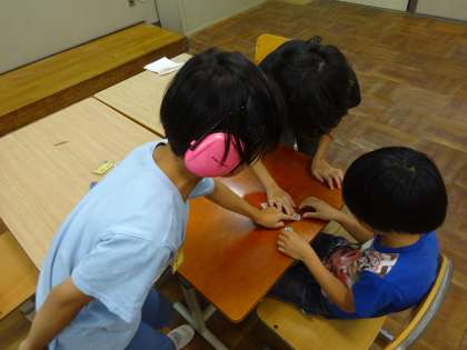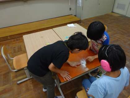 100までの数を使って,大きさ比べをしました。数字が記されたおはじきを使って学習をしました。「せーの!」で目の前に出された2つのおはじきの大きさを比べます。「どちらが大きいかな。」「あわてないでしっかり見ることが大切だね。」「66と99はうっかり間違えそうだよ。」など,楽しみながら数の大きさの学習をすることができました。