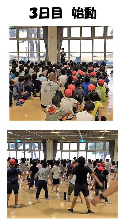 朝の集いでは、ラジオ体操をしたり、学校紹介をしたりしました。