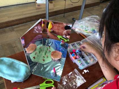 鏡の反射を生かして,思い思いの世界を表現しています。