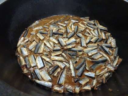 さんまのかわり煮は赤みそ・三温糖・酒・トウバンジャン・しょうゆ・米酢で調味していて,骨までやわらかく煮ています。ごはんによく合う味つけでした。