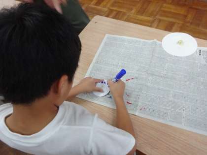 図画工作科でこまをつくりました。好きな色を塗って,世界に一つだけの自分だけのこまです。「こまが回ると色が混ざって見えるよ。」「不思議だね。」など,こまを回しながら塗った色の変化を見て楽しむ姿がありました。また,ぶんぶんごまに挑戦した児童もいました。はじめは難しかった様子でしたが,コツをつかむといつまでも夢中になって回している姿が印象的でした。