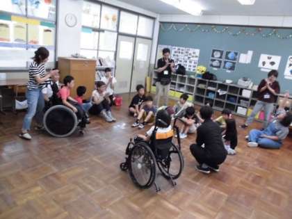 呉竹支援学校の2年生が羽束師小学校に来てくれて,これまでそれぞれが学習してきた歌やダンスを一緒にして交流をしました。呉竹支援学校には,昨年度まで羽束師小学校にいたお友だちもいます。「久しぶりだね。」「背が伸びたね。」「また会おうね。」など,久しぶりの再会を喜び,また次の交流を約束する姿が印象的でした。