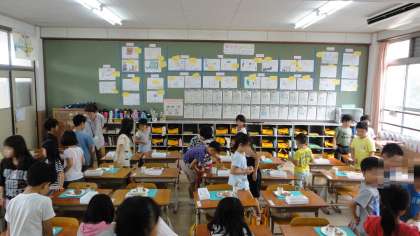 友だちの作品を見て「おいしそう!」と感想を伝え合っていました。