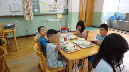 先日は,初めてのランチルームでの給食!