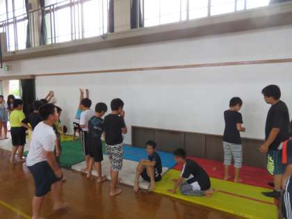 休み時間に希望者が体育館へやってきて,個人練習をしています。